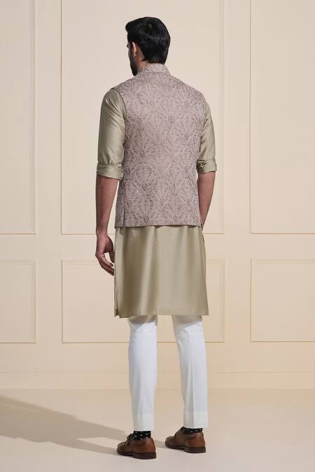 Beige Silk Embroidery And Brown Designer Nehru Jacket