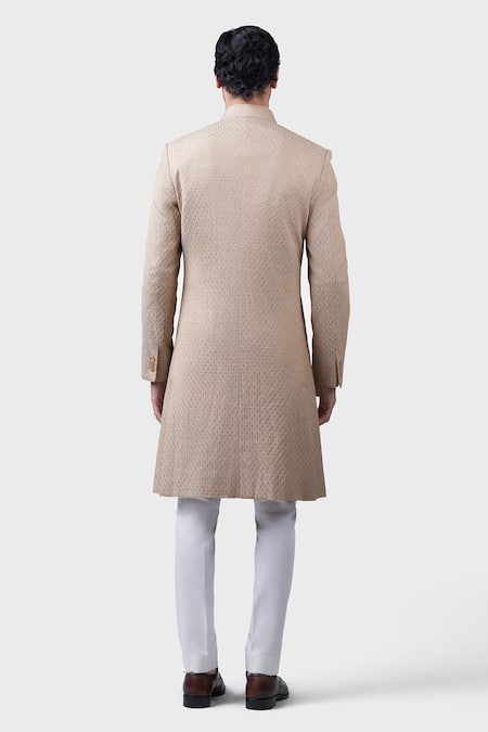Beige Silk, Brocade Sand Dune Pattern Achkan