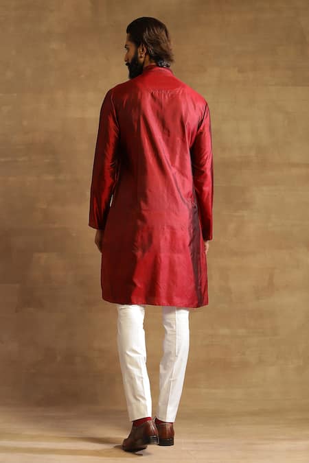 Maroon hued long straight kurta, adorned with embroidery along the placket and sprinkle of all-over buttis.
