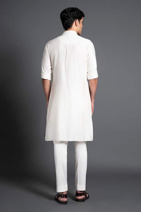Off white kurta featuring jaal embroidery inspired by old world murals and palace interiors