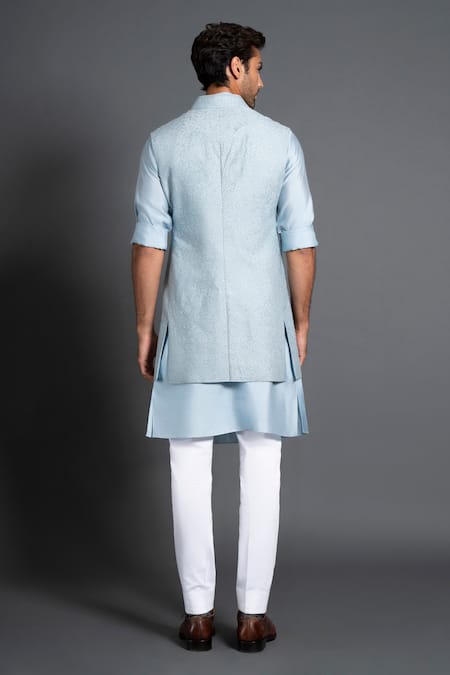 Blue Silk Embroidery Geometric Patchwork Waistcoat