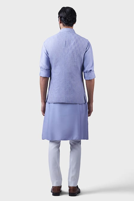 Lavender waistcoat crafted in silk featuring a trellis pattern and butti thread embroidery