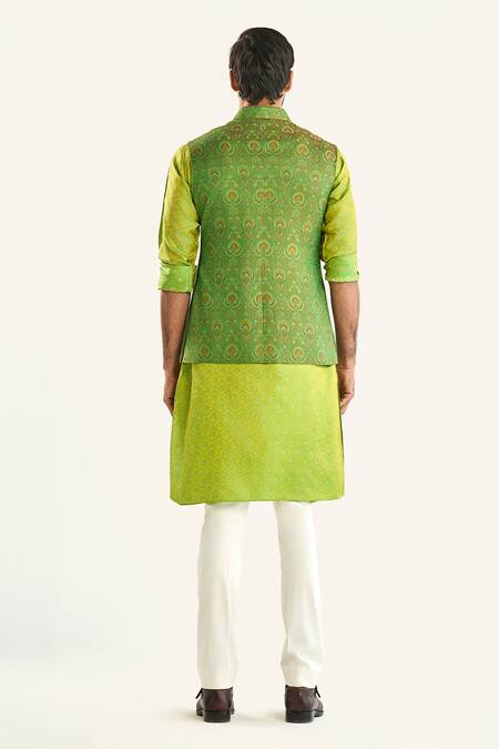 Buy_Raghavendra Rathore Jodhpur_Green Silk Embroidery Woven Bundi _Online_at_Aza_Fashions