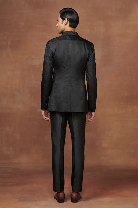 Black Jacquard Embroidery Sovereign Floral Woven Bandhgala