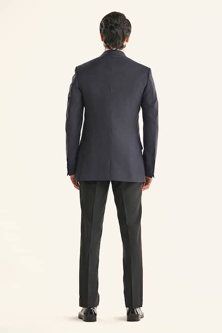 Blue Silk Sequins The Gltizy Woven Abstract Tuxedo Jacket
