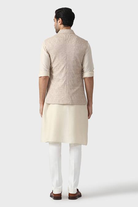 Buy_Raghavendra Rathore Jodhpur_Beige Mohair Embroidery The Marwar Floral Waistcoat _Online_at_Aza_Fashions