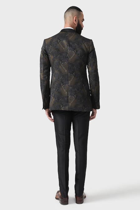 Buy_Raghavendra Rathore Jodhpur_Blue Wool Embroidery The Pollock Tuxedo Jacket _Online_at_Aza_Fashions
