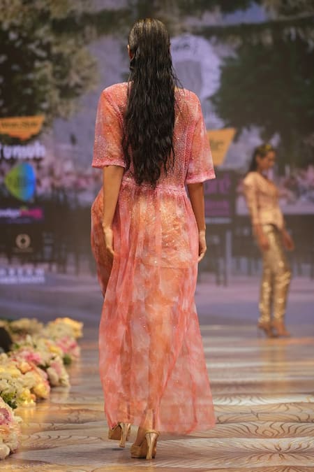 Buy_Rahul Singh_Pink Chanderi , Sequins, Beads Round Hand Embroidered Dress Bustier Set _at_Aza_Fashions