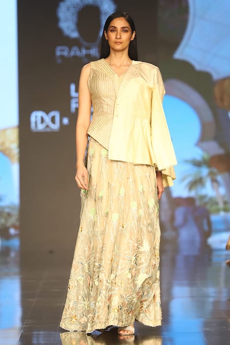 Buy_Rahul Singh_Gold Jacket And Corset Chanderi Pure  Lehenga Organza Zari & Set_at_Aza_Fashions