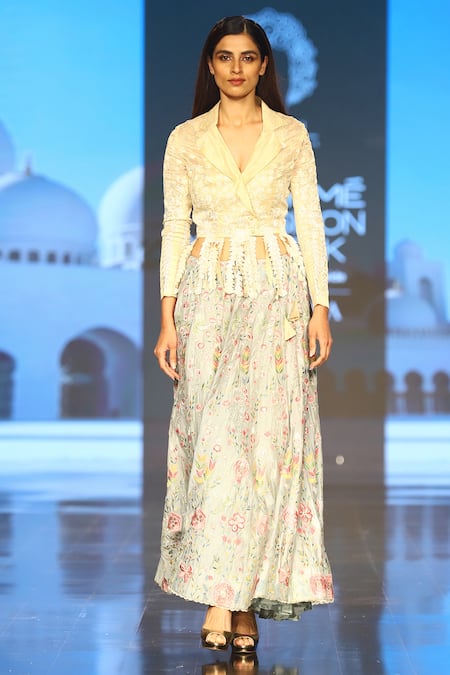 Buy_Rahul Singh_Gold Chanderi Floral, Thread Work, Zari Embroidered Jacket Lehenga Set_at_Aza_Fashions