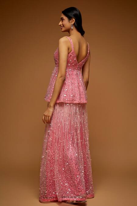Buy_Neeta Lulla_Pink Raisel Sequin And Crystal Embroidered Kurta Sharara Set_Online_at_Aza_Fashions