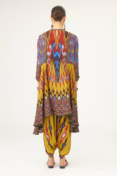 Yellow Silk Embroidery Round Neck Aamilah Asymmetric Tunic