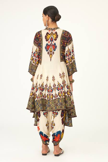 Beige Silk Beads Round Neck Aamilah Flared Tunic
