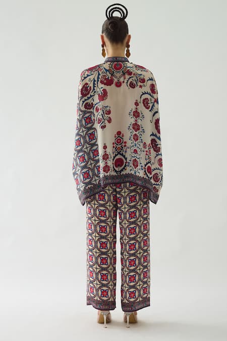 Multi Color Silk Bandeau Neck Chanel Gul Print Tunic