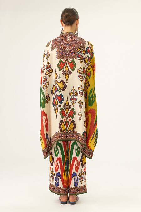 Multi Color Silk Embroidery Round Neck Chanel Abstract Mandala Print Tunic