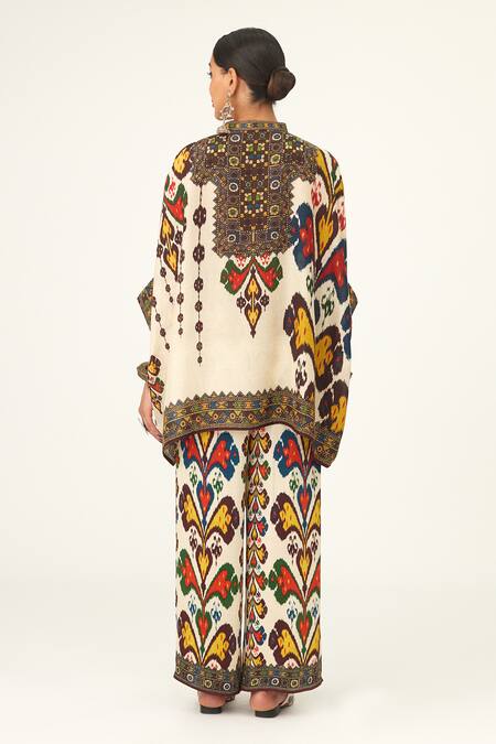Beige Silk Beads Bandeau Neck Chanel Geometric Pattern Tunic