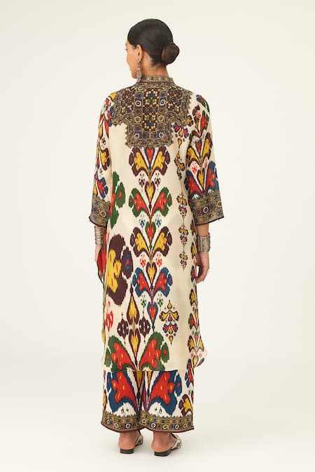 Beaded sleeve details, Geometric pattern design, High low hemline