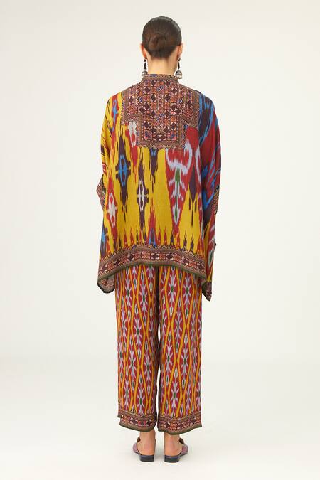 Front button detailing, Geometric pattern design, Band collar with embellishments