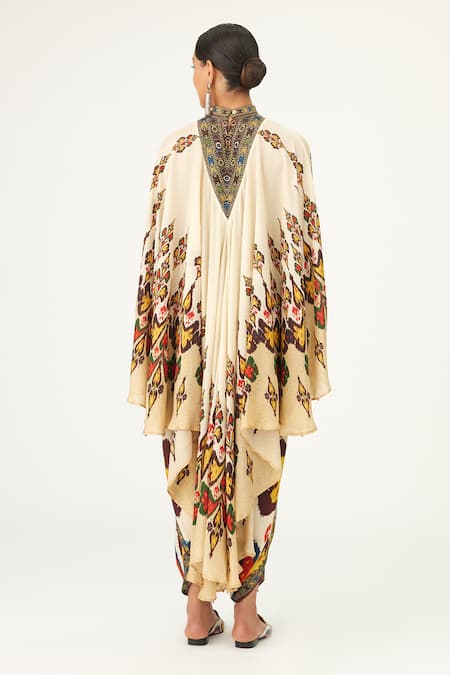 Geometric pattern detailing on the fabric, High neckline with intricate embellishments