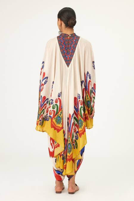 Multi Color Silk High Neck Farah Printed Draped Dress