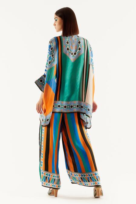 Multi Color Satin Geometric Print Gloria Layered Pant