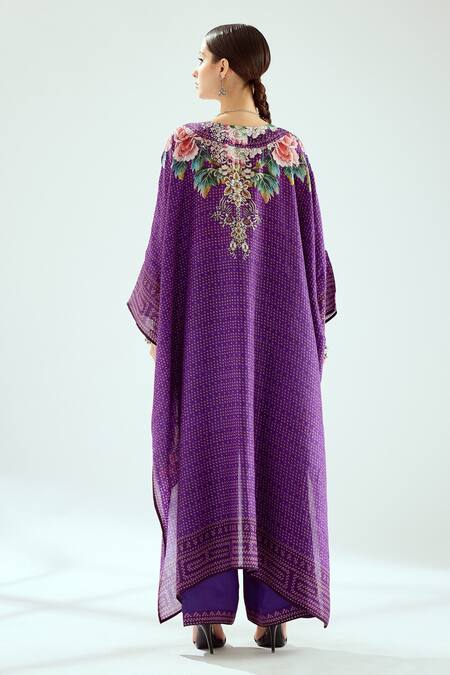 Purple Silk Round Neck Hibika Printed Kaftan Tunic