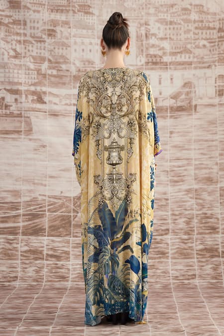 Yellow Silk Embroidery V-neck Imama Florette Print Kaftan
