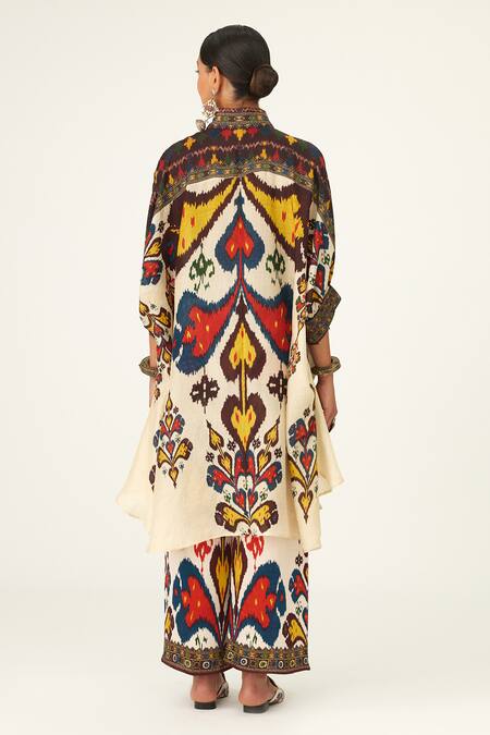 Beige Silk Beads Kamara Geometric Pattern Long Shirt