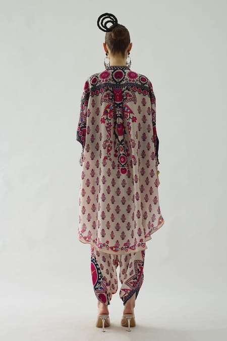 Pink Silk Mirrors, Beads Bandeau Neck Mabel Printed Shirt Tunic