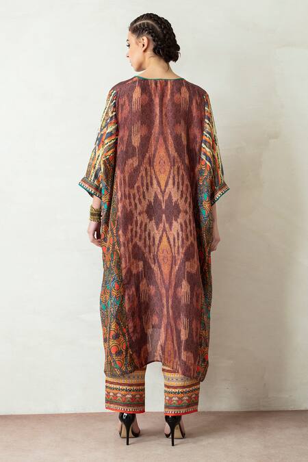 Buy_Rajdeep Ranawat_Brown Silk Round Madina Asymmetric Tunic_Online_at_Aza_Fashions