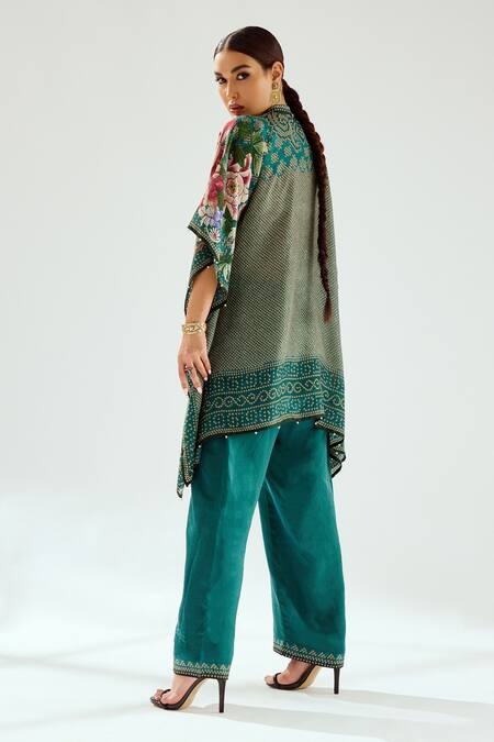 Green Silk Beads Bandeau Neck Majnu Poncho Tunic