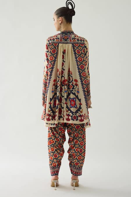 Orange salwar featuring mughal print and mirror & thread embroidery