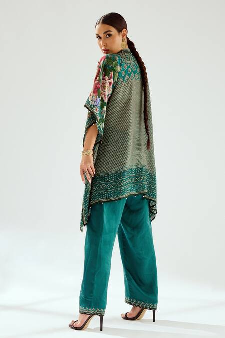 Green Satin Paloma Geometric Print Hem Pant