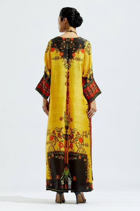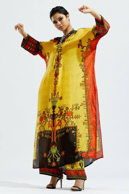 Yellow Satin Floral, Geometric Permaz Printed Palazzo