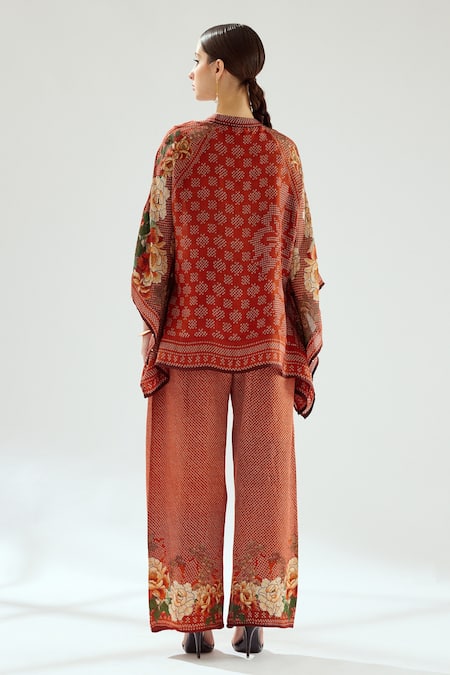 Orange Silk Embroidery Mandarin Collar Ramona Poncho Tunic