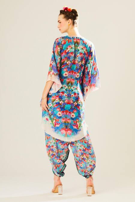 Turquoise dhoti pant featuring all-over abstract floral prints