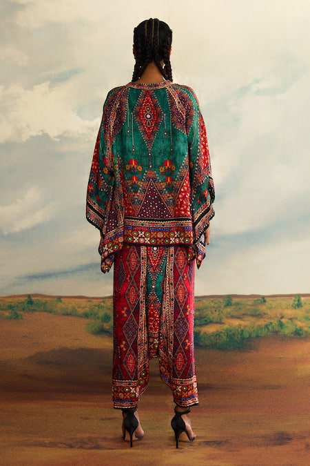 Asymmetric hemline detailing, All-over tribal print pattern, Kimono sleeve design