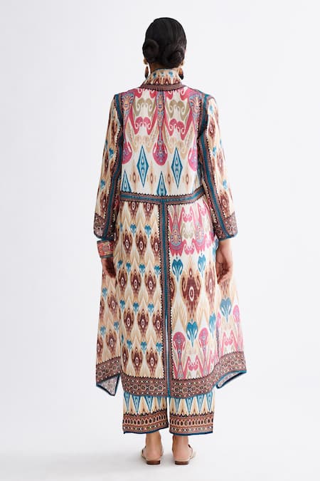 Multi color full sleeve cover-up jacket featuring an abstract print