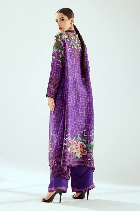 Purple Silk Beads Bandeau Neck Zeynep Printed Long Tunic