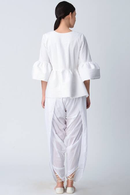 White plain dhoti pants with back overlay detail.