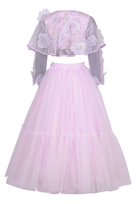 Purple Net Embroidery, Applique Bloom Patch Cape And Lehenga Set