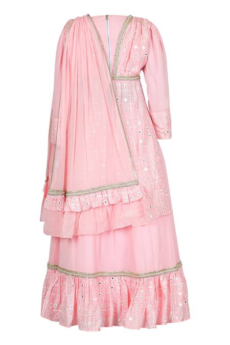 Pink Georgette Mirrors, Embroidery Jaal Kurta Lehenga Set