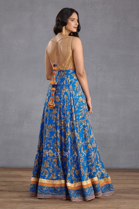 Buy_Torani_Blue Silk, Chiffon Sequins, Lace, Rang Shyam Raabia Anarkali With Dupatta