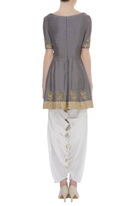Grey Embroidered Dhoti Pant Set