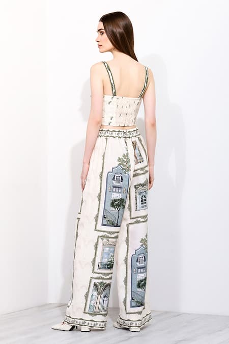 Ivory Linen Sweetheart Neck Arianna Windows Of The World Print Bustier