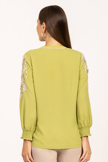 Green Georgette Embroidery Round Neck Avelina Top