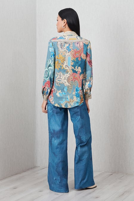 Multi Color Modal, Satin Embroidery Collared Dorelle Baroque Print Shirt