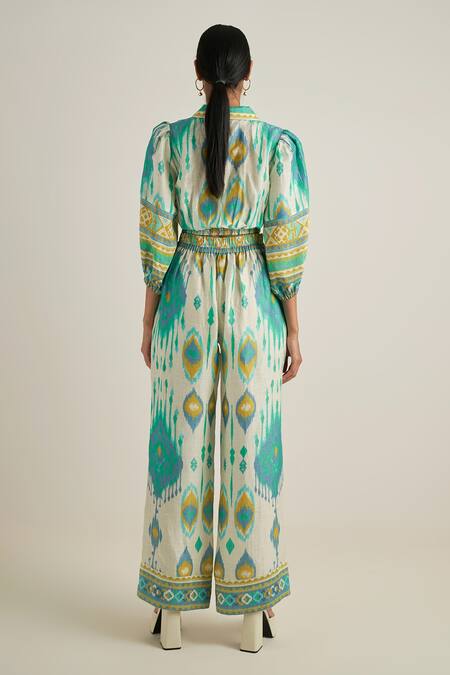 Multi Color Linen Ikat Print Wide Leg Pant
