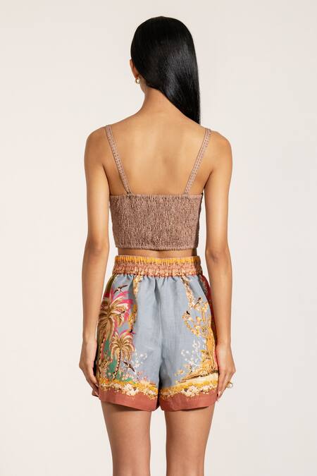 Multi Color Linen Multicolor Palm Beach Print Shorts