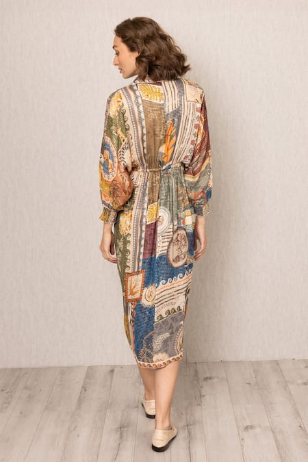 Multi Color Viscose Sequins Collared Nowra Kimono Wrap Dress